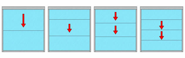 Two models avaible: With (E2) or without (E1) an horizontal strengthen profile (30 mm) beetwen glass 2 and 3. The profile reduces the glass bend