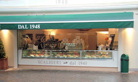 At Scaligeri , an ice-cream parlour in Sirmione, a display window was created above the ice-cream counter. This allows the management to have protection in the winter months. In fact, during this season the window will be closed but ice-cream can be served by means of an open leaf door. During the summer the display window will be opened to the maximum. |
